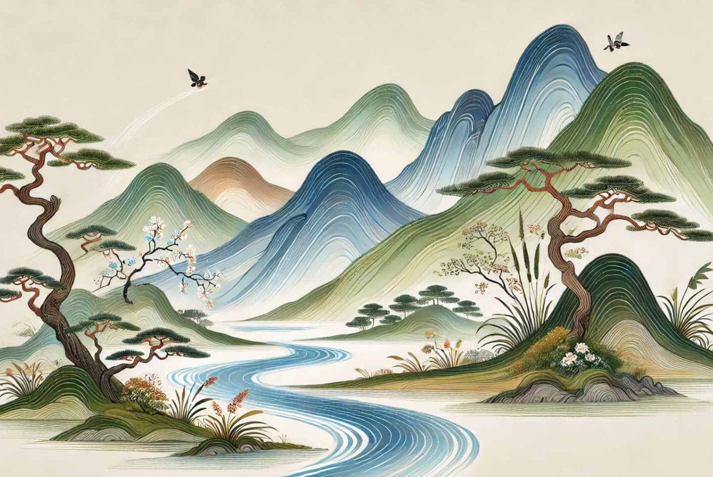 • 자연과의 조화: 한국 전통 미술은 자연을 단순히 관찰하는 데서 그치지 않고, 자연의 본질과 조화를 이루려는 노력이 돋보입니다. 예를 들어, 산수화에서는 자연의 거대한 스케일과 인간의 존재를 한 화면에 담아내며 겸손과 경외를 표현했습니다.